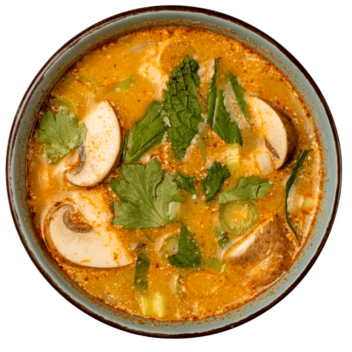 Wahlweise mit +0€ Tofu / +0,60€ pan. Huhn / +0,60€ Rind / +1,60€ Ente / +1,60€ Garnelen