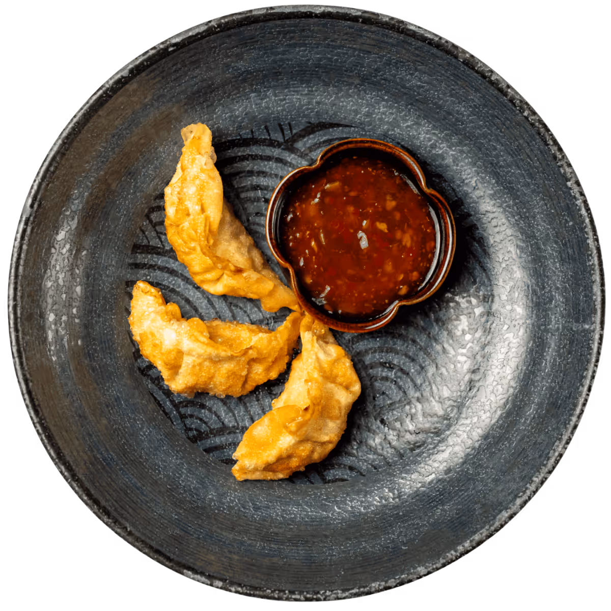 3 Stück- Knusprige jap. Teigtaschen mit sweet-chili Dip - Wahlweise Vegetarisch oder mit Huhn